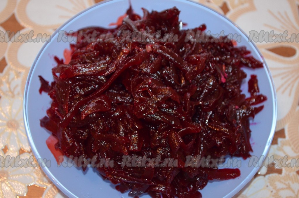 Остывшую очищенную варёную свеклу натереть на крупной тёрке.