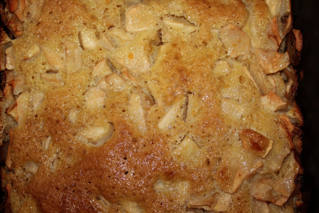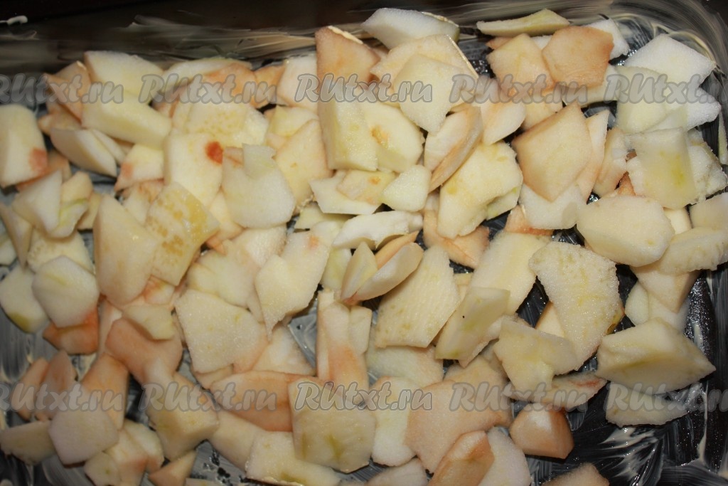В форму, смазанную маслом, выложить равномерно яблоки.