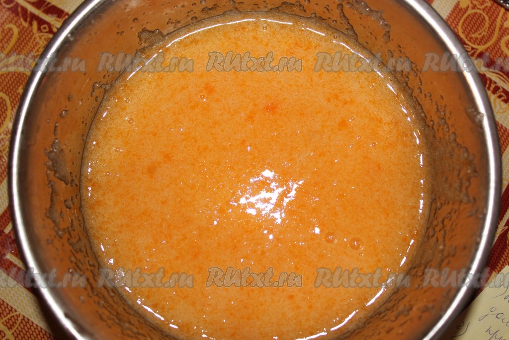В объёмную миску вбить 3 яйца, всыпать 1 стакан сахар, взбить до получения пышной пены (я взбивала венчиком, можно взбить миксером)