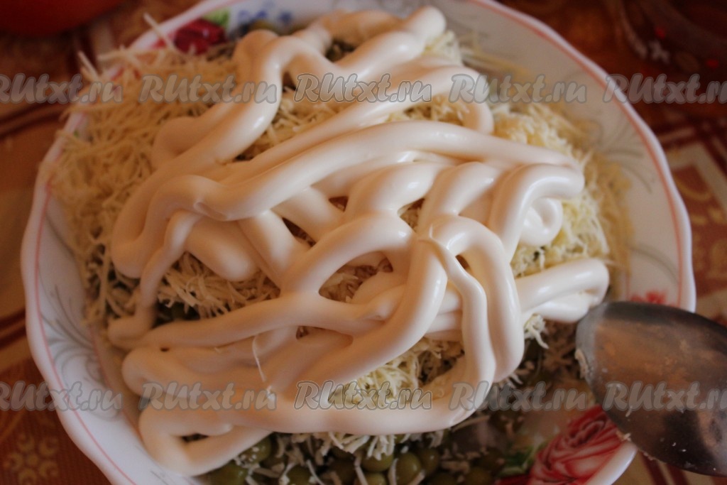 Заправляем все майонезом.