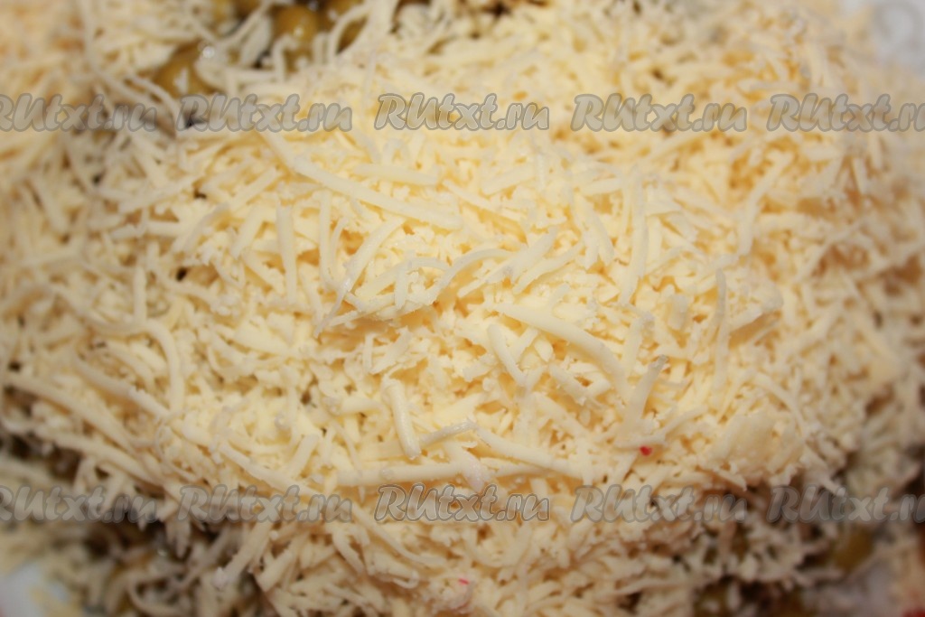 Натираем на терке сыр и добавляем в крабовый салат.