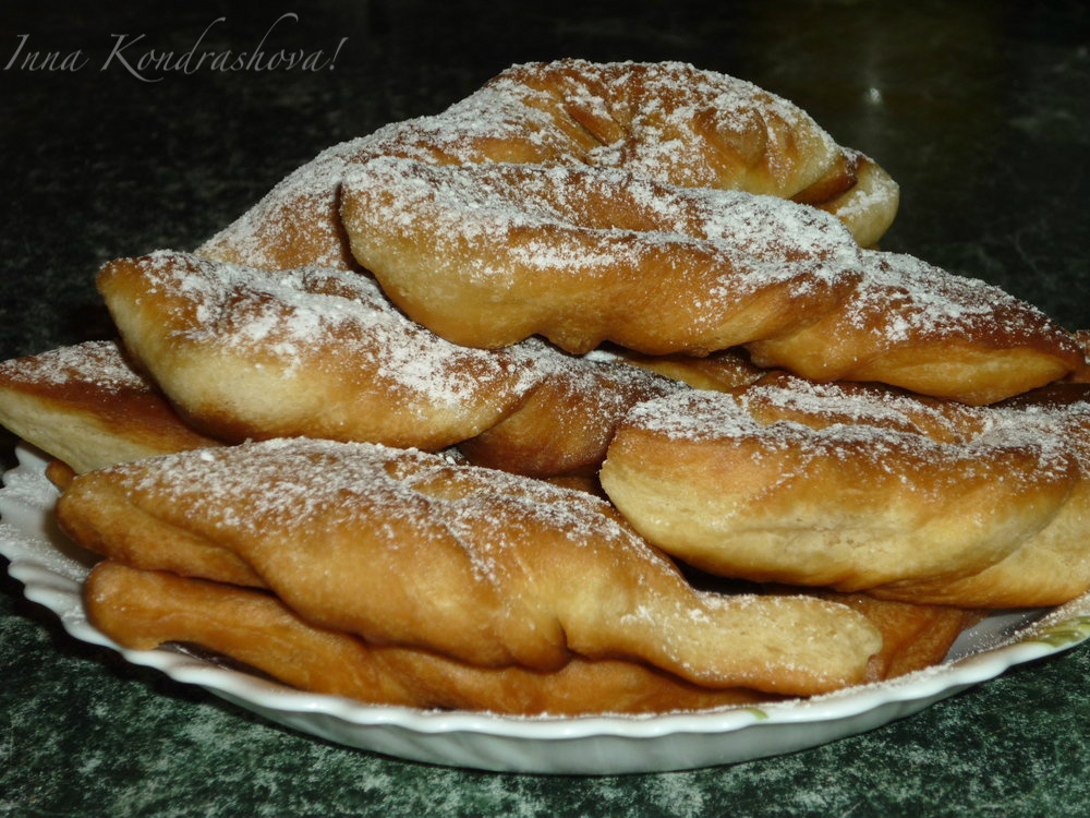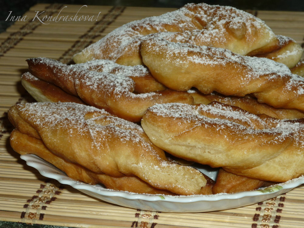 Пышные, мягкие кребли, приготовленные на кефире без добавления дрожжей, при подаче посыпать сахарной пудрой. Как бы вы не назвали эту выпечку: "кребли", "вергуны", "пышный хворост" - в любом случае получится вкусно!
