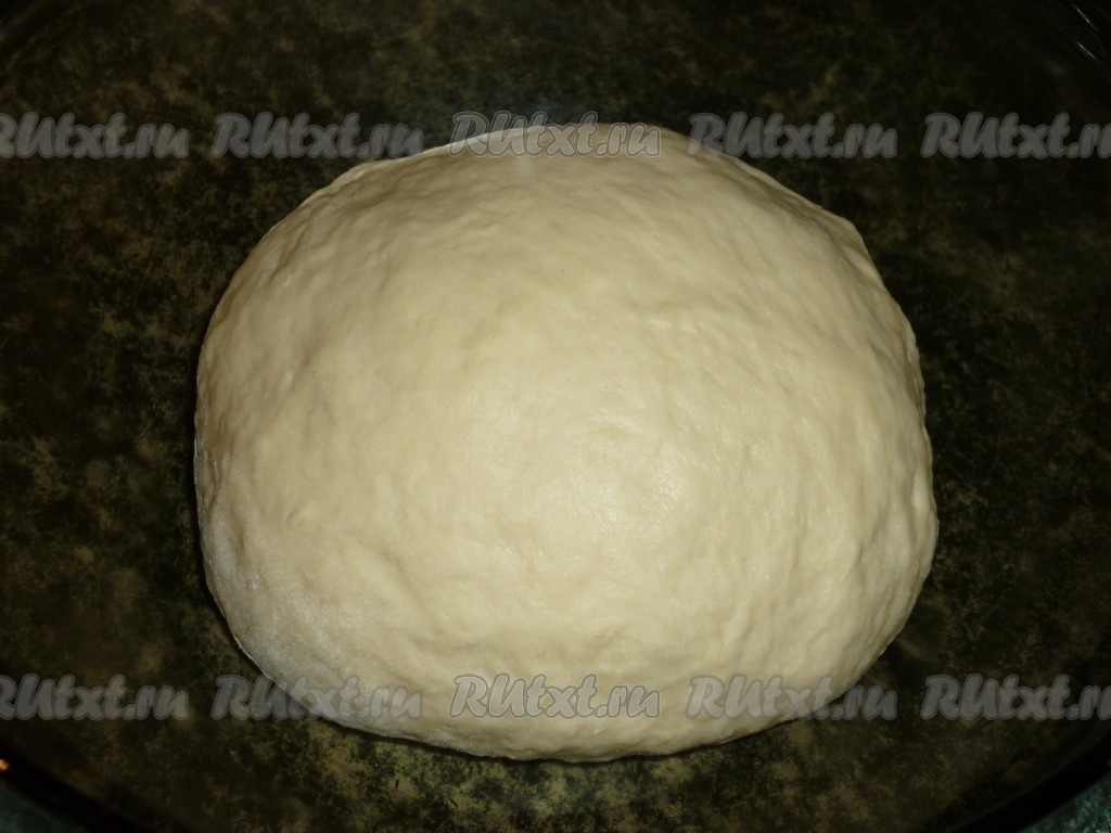 Частями добавляя просеянную муку и хорошо вмешивая её, замесить мягкое, приятное в работе тесто, не липнущее к поверхности и ладоням. Тесто накрыть полотенцем и оставить на 20 минут в тёплом месте.