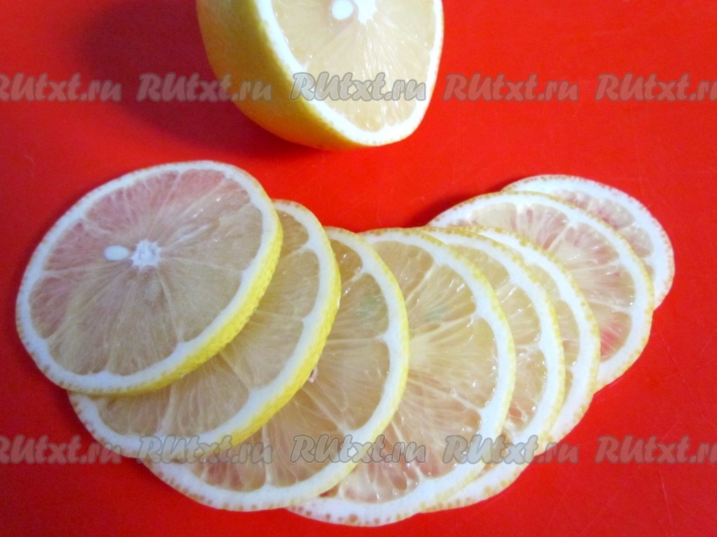 Лимон тщательно вымойте и нарежьте тонкими ломтиками.