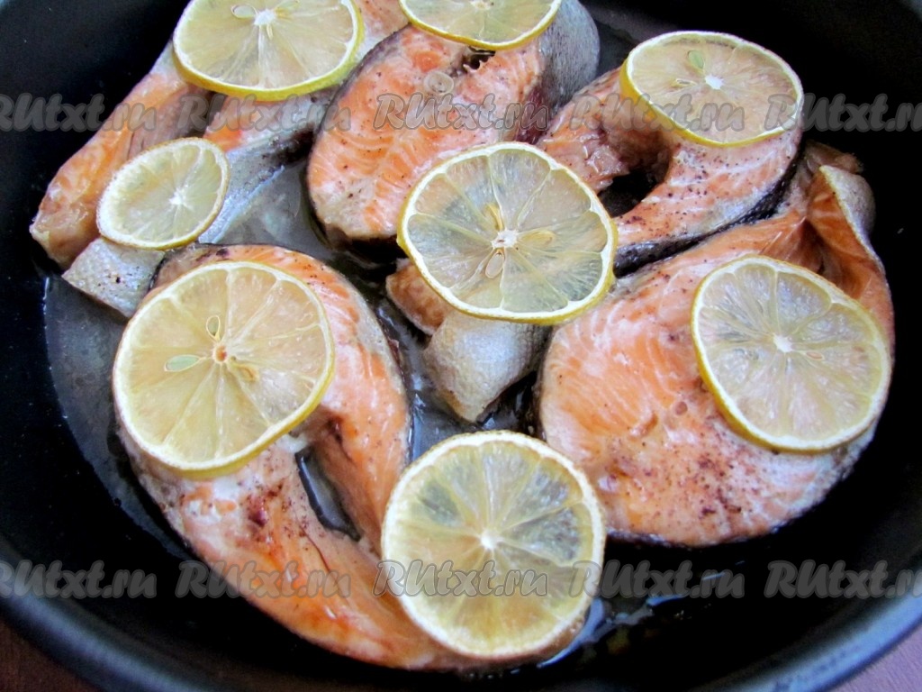 На каждый кусочек форели положите 1-2 ломтика лимона. Разогрейте духовку до 200-210 градусов и запекайте рыбу около 15-20 минут.