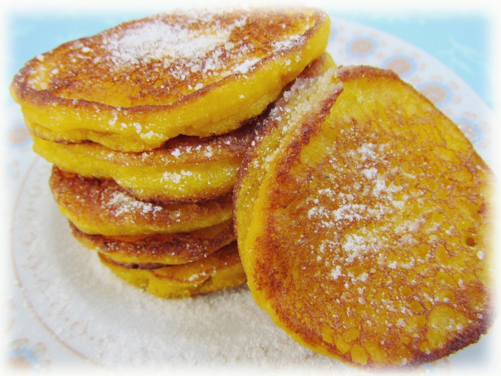 Тыква - полезный овощ, из которого можно приготовить самые разнообразные и вкусные блюда. К завтраку для всей семьи предлагаю приготовить тыквенные оладьи на кукурузной муке. Яркие, напоминающие маленькие солнышки, оладьи понравятся и детям и взрослым. Подавайте оладьи со сметаной, медом, вареньем или сгущенным молоком. А можно просто посыпать их сахарной пудрой. Вкусного завтрака!
