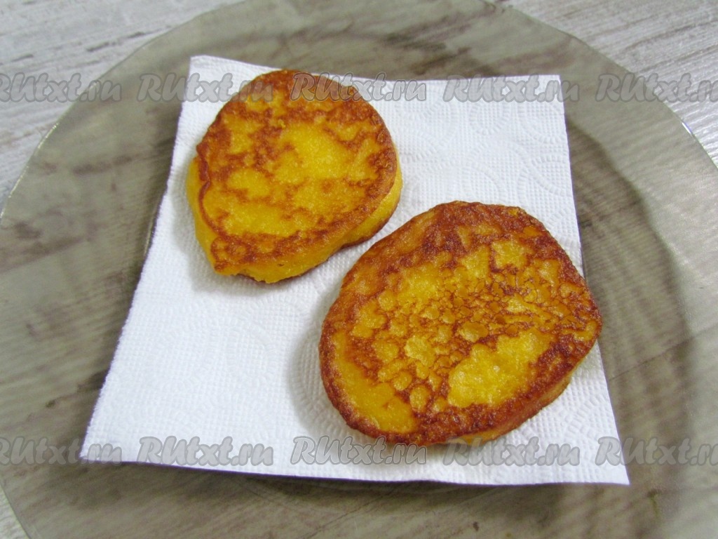 Жарьте тыквенные оладьи на хорошо разогретой сковороде в небольшом количестве растительного масла с обеих сторон и до румяной корочки.