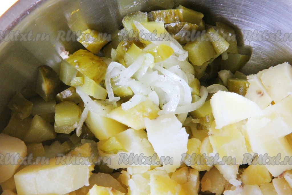 Салат с отварной картошкой и солёными огурцами