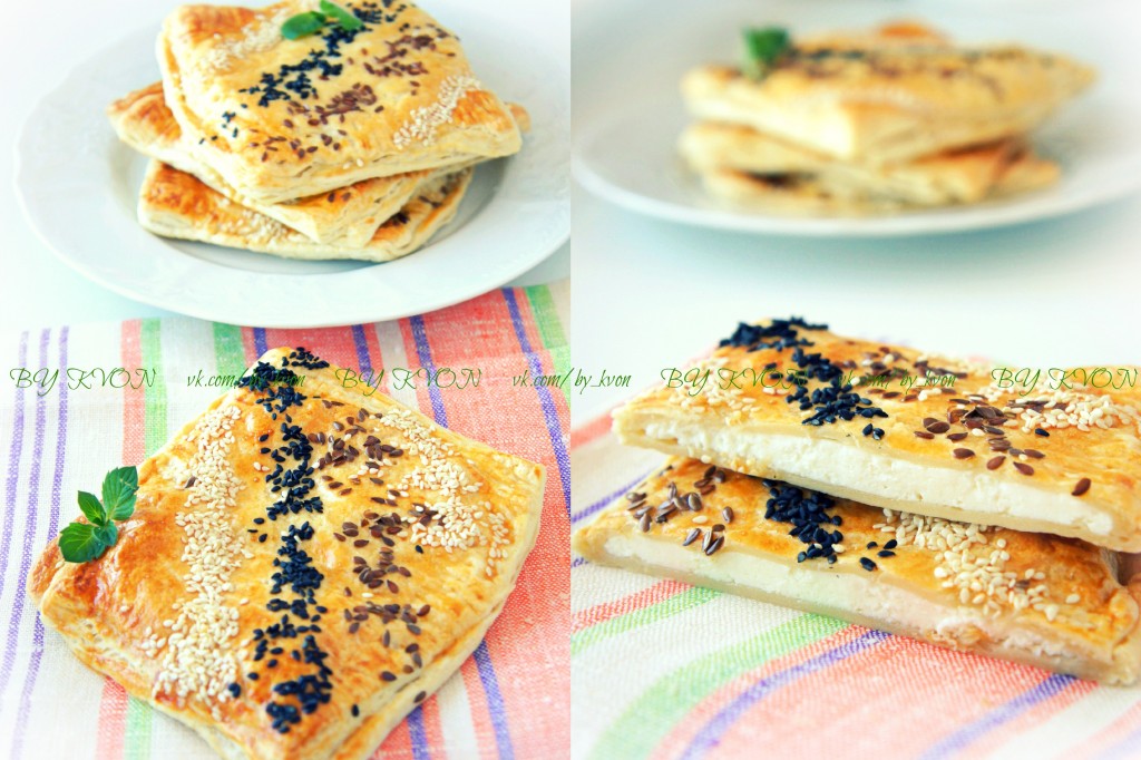 Приготовить слойки из готового слоеного теста - это несколько минут вашего свободного времени, а сколько приятных минут за чаепитием с близкими людьми вы получите взамен! Если говорить двумя словами - слойкам быть! С начинкой для таких слоек вы можете фантазировать и фантазировать. Сегодня, давайте приготовим вместе слойки с адыгейским сыром. Начинка у таких слоек получается очень сочной, а сами слойки - очень нежными...