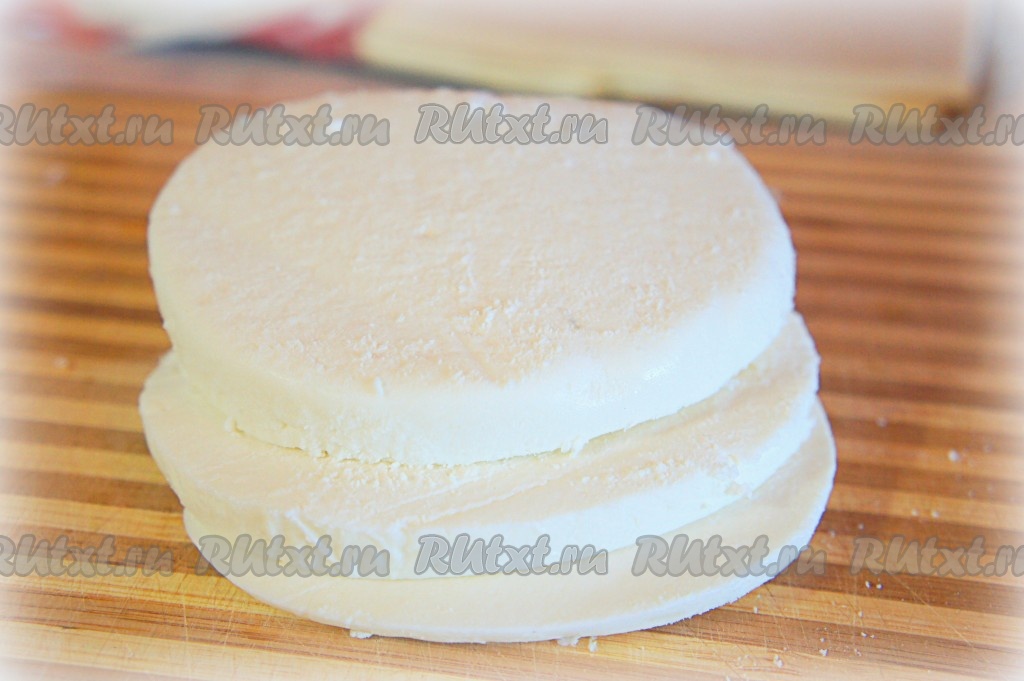 Подготовьте начинку. Сыр разрежьте на 4 равных куска. При желании можно натереть сыр на крупной тёрке, добавить зелень по вкусу (я не добавляла).