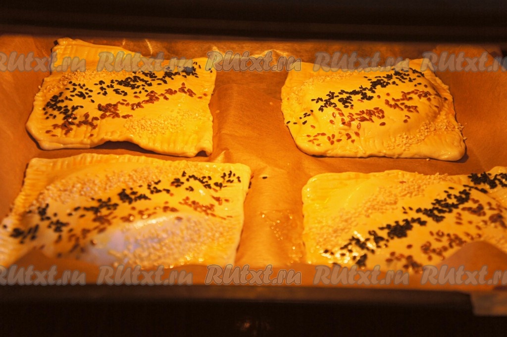 Духовку разогрейте до 200 градусов. Выпекайте слойки с адыгейским сыром около 20 минут. О готовности слоек вам подскажет румяная золотистая корочка.