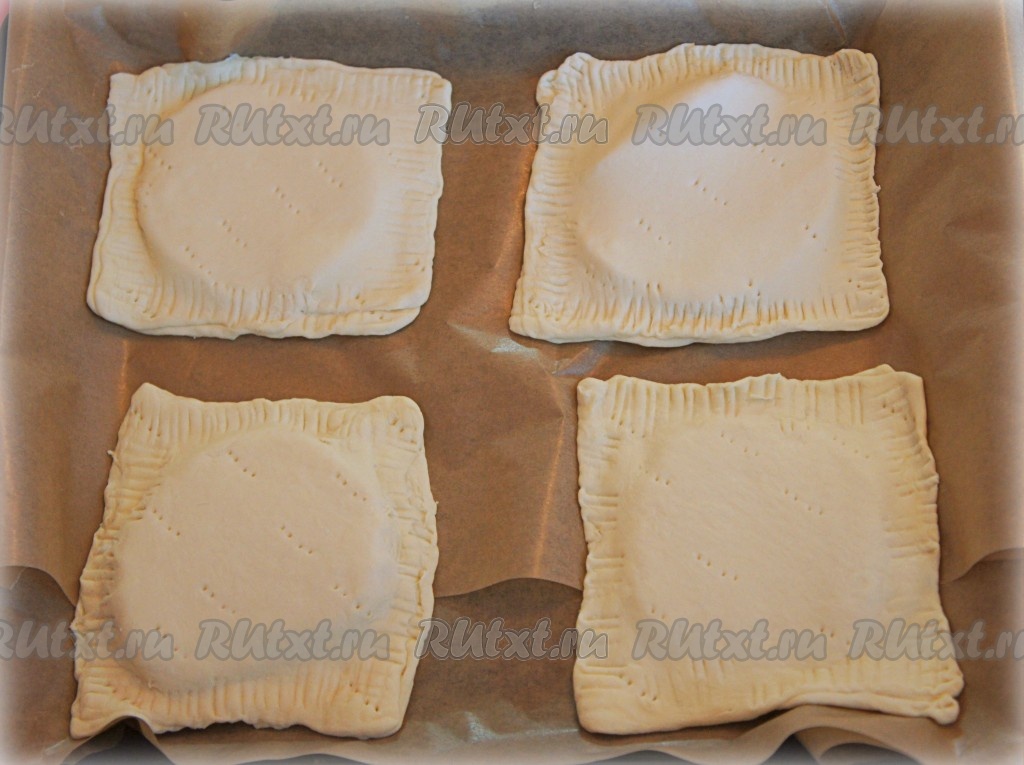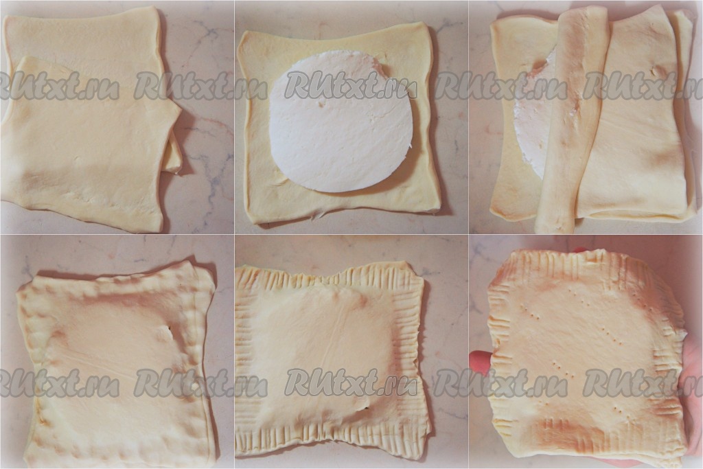 Аналогично сформируйте остальные слойки с адыгейским сыром. Противень застелите бумагой для выпечки, выложите слойки и сделайте на каждой несколько наколов вилкой.