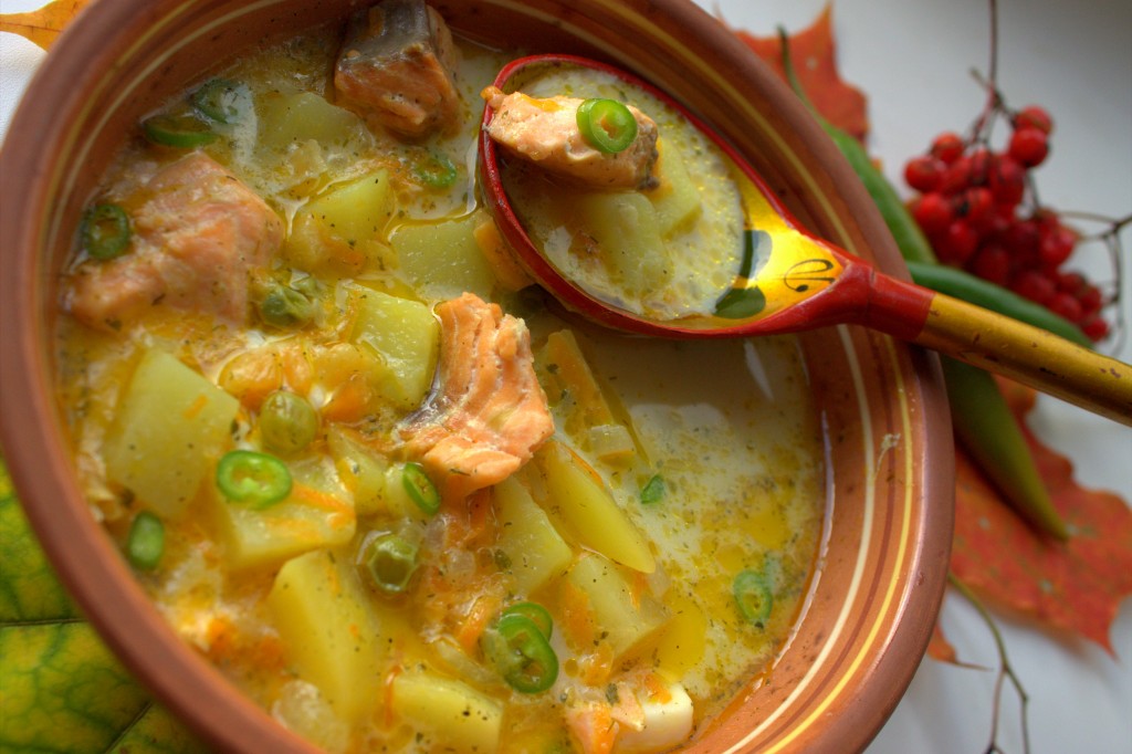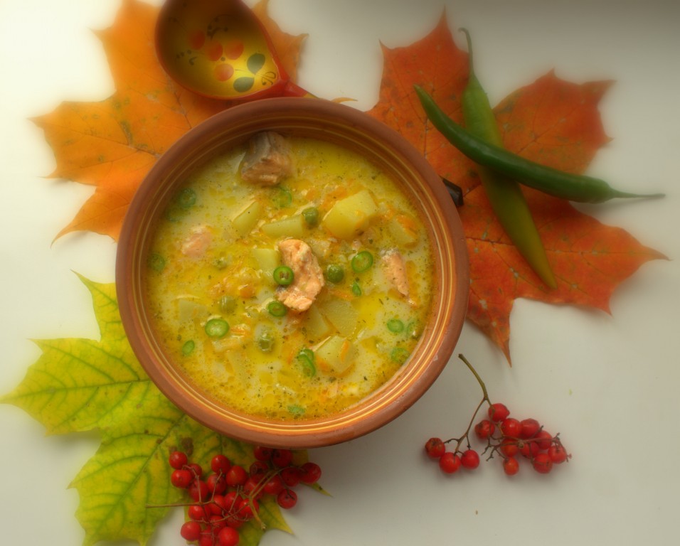 Для приготовления сырного супа с лососем в мультиварке понадобится: