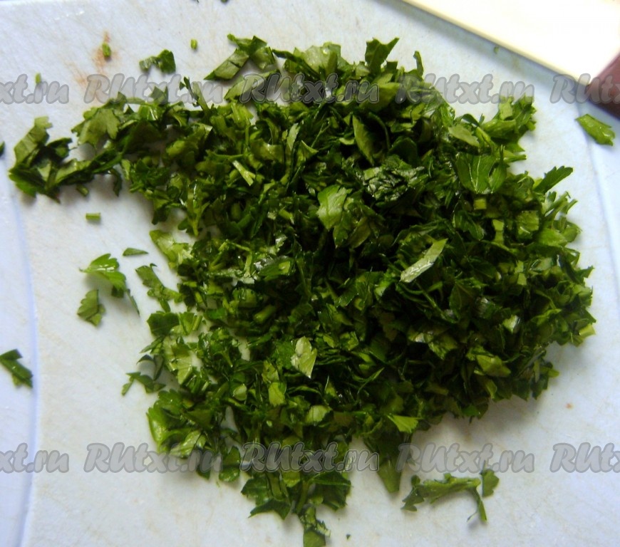 Зелень вымыть, мелко нарезать.