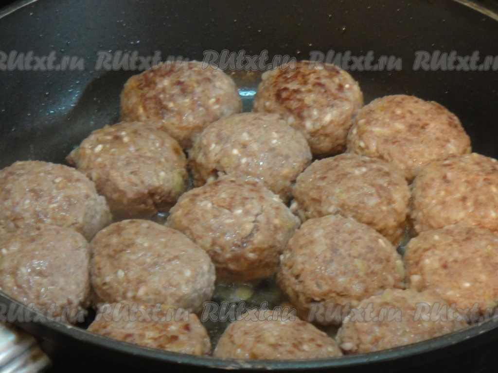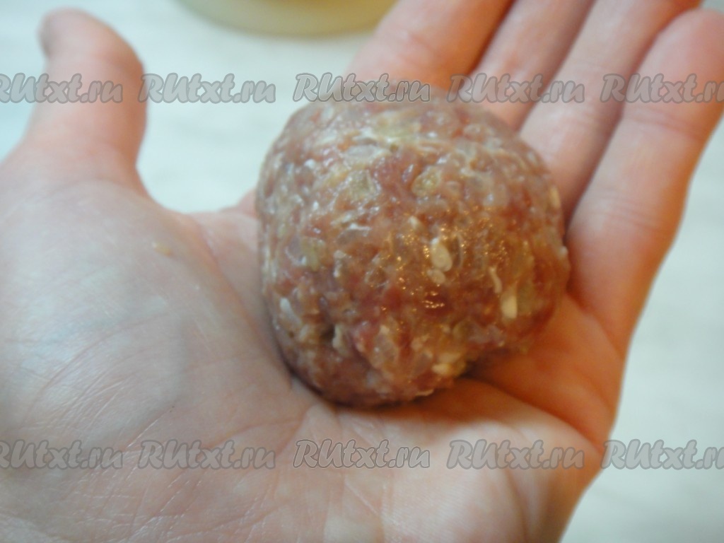 Масло накалить на сковороде и слепить из фарша шарики нужного вам размера (у меня такие).