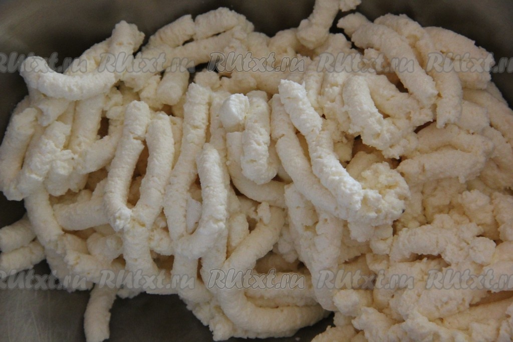 Творог пропускаем через мясорубку. Очень важно, чтобы творог был пластичный, с высоким процентом жирности. Если возможно, лучше творог купить домашний, фермерский.