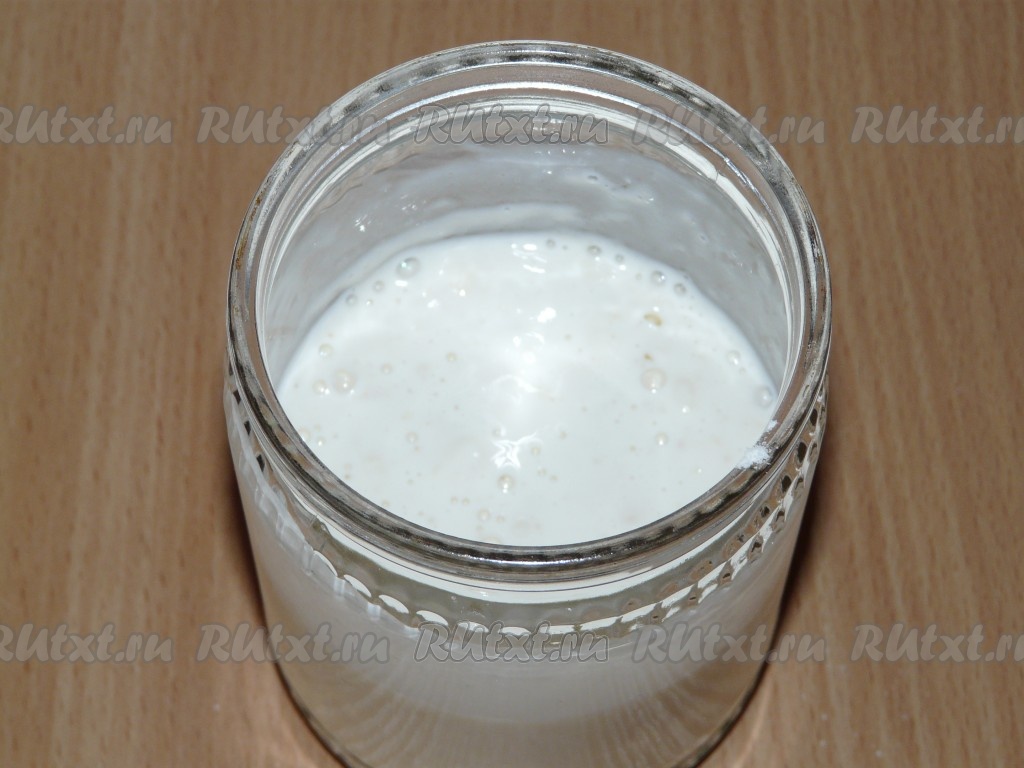 В тёплое молоко добавить дрожжи, сахар и 2 столовые ложки муки. Всё хорошо размешать и оставить в тёплом месте на 15 минут.