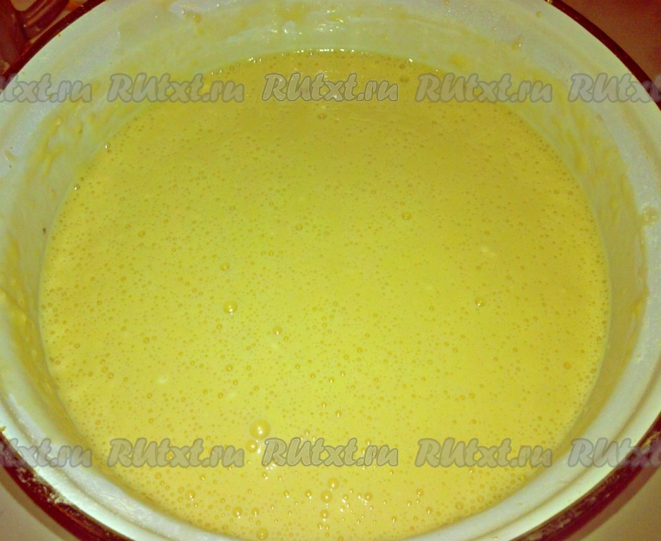 Добавляем яйца, соль, хорошенько перемешиваем венчиком в течение 2-3 минут. Всыпаем муку в два захода, каждый раз тщательно перемешивая блинное тесто.