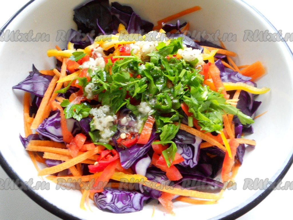 Поместить необыкновенно вкусный и красивый салат из синей капусты в холодильник минимум на 3 часа, а лучше на сутки (в этом случае капуста будет мягче и хорошо промаринуется). Хранить в стеклянной таре в холодильнике.