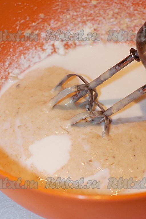 Влить молоко, все хорошенько перемешать. Советую использовать блендер с насадкой-венчик.