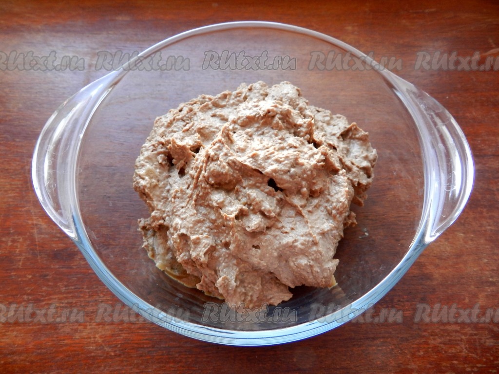 Готовую печень остудить, переложить в блендер и пюрировать. Паштет не должен получиться слишком жидким, чтобы в дальнейшем держать форму, но и слишком густым он быть не должен, иначе рулет будет сухим.