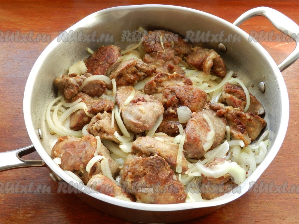 Для того чтобы убедиться, что печёнка готова, просто разрежьте кусочек ножом, если в разрезе нет примесей крови, значит куриная печень готова.