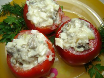 Предлагаем вашему вниманию простой рецепт фаршировки помидоров с грибами.