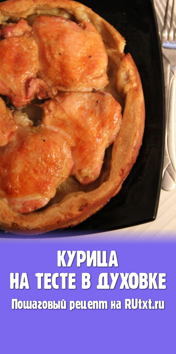 Курочка, запеченная на тесте в духовке, получается очень сочной, нежной и ароматной. Количество теста указано на большой противень или сковороду, примерно в диаметре 34 см. Для формы меньшего диаметра, советую использовать половину нормы продуктов, входящие в состав теста.