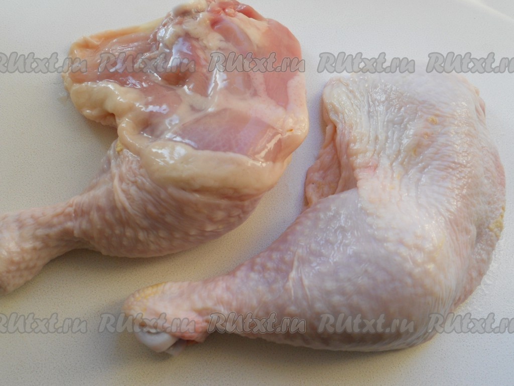 Порционные части курицы (у меня - куриные окорочка) хорошо вымыть, обсушить бумажным полотенцем.