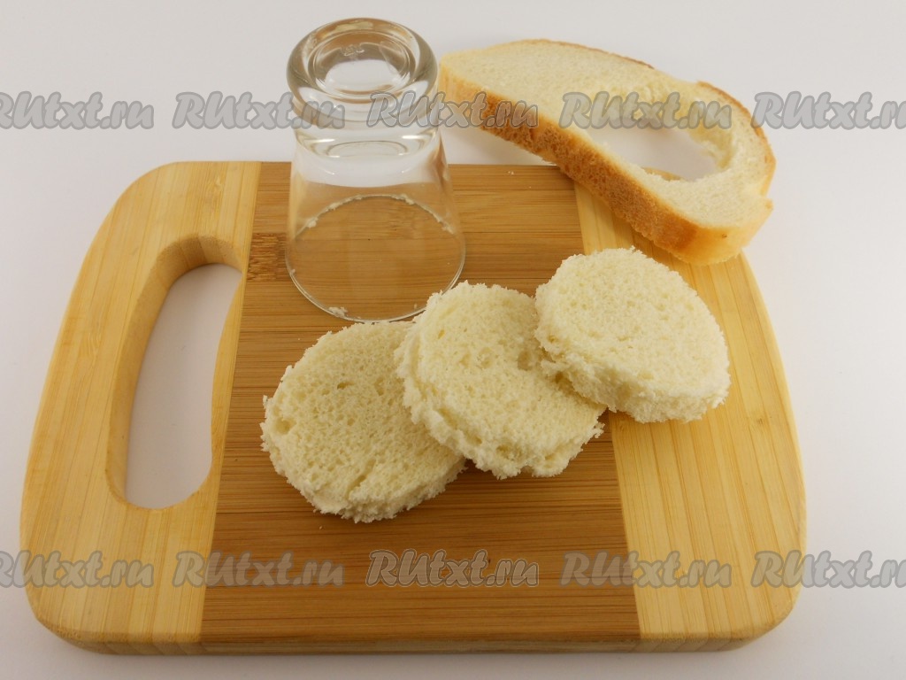 Из ломтей белого батона вырезать рюмкой кружочки.