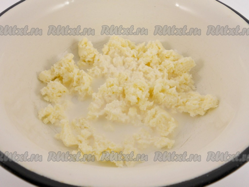 Брынзу размять вилкой, влить сливки, хорошо перемешать.