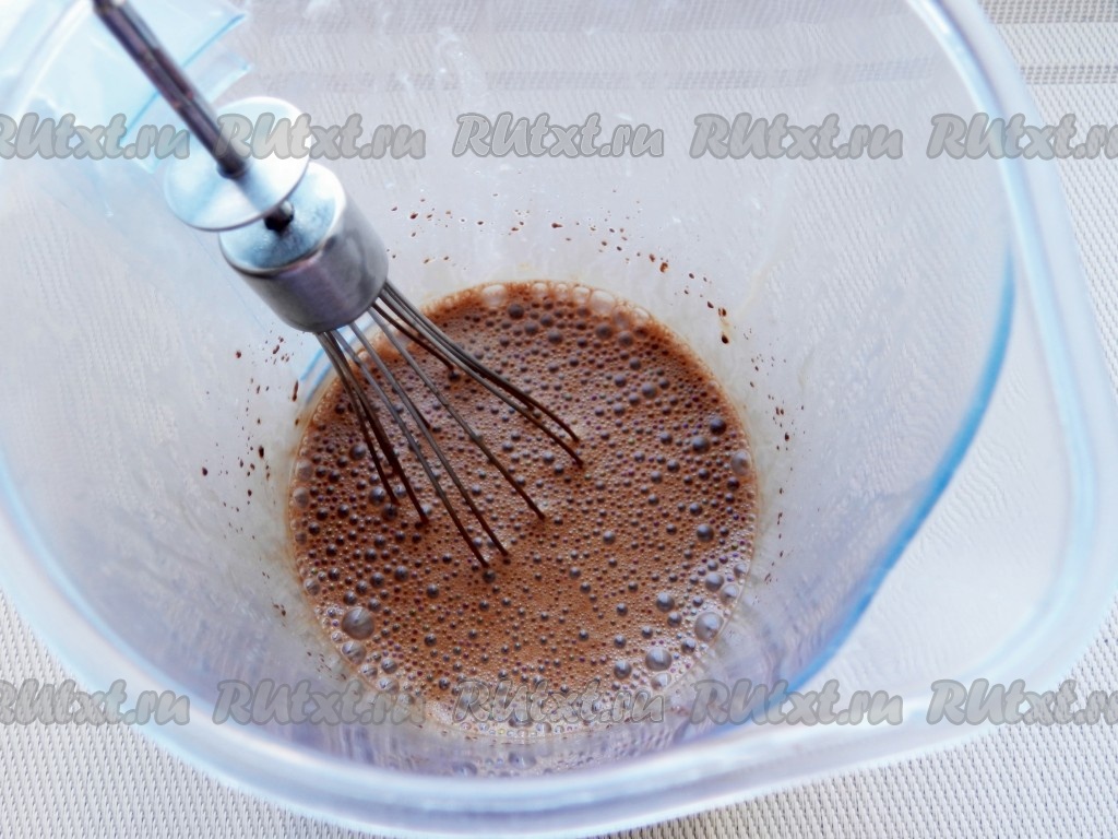 Масса будет довольно жидкой, но при остывании она загустеет. Накрыть посуду со сливочно-шоколадной массой пищевой плёнкой и убрать в холодильник на несколько часов или на ночь.