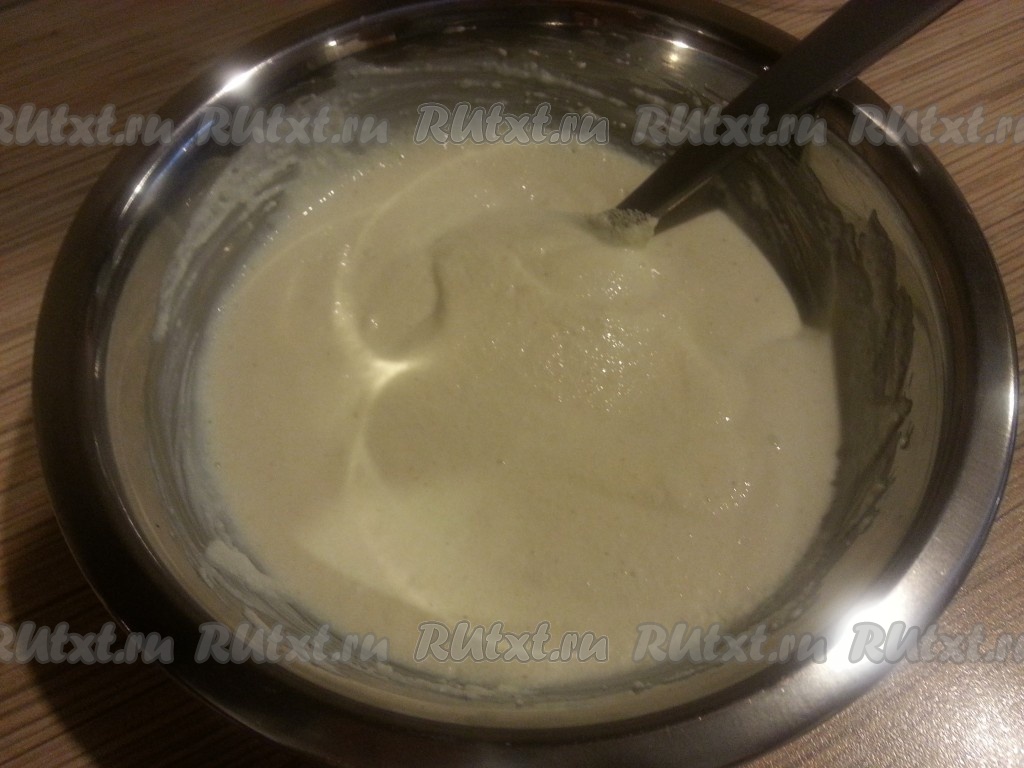 Смешать сметану, кефир, творог и манку. Отставить в сторону.
