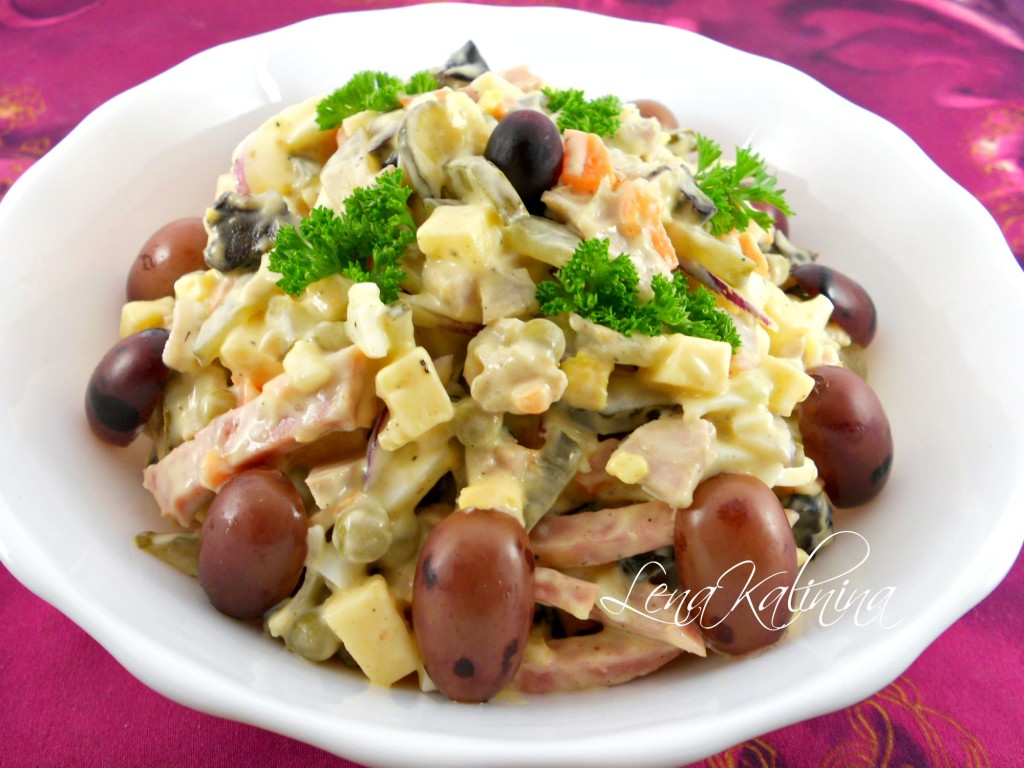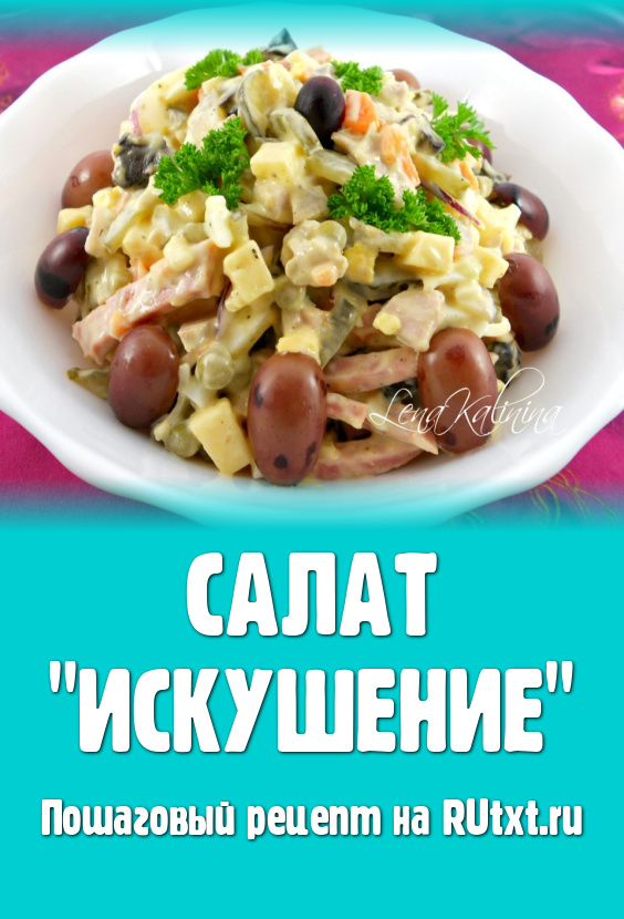 Салат "Искушение" я готовлю на праздничный стол очень давно. Этот салат всегда является фаворитом у гостей. Он довольно сытный, но безумно вкусный и удержаться от искушения съесть еще ложечку - просто невозможно. Название этого салата говорит само за себя! Попробуйте!