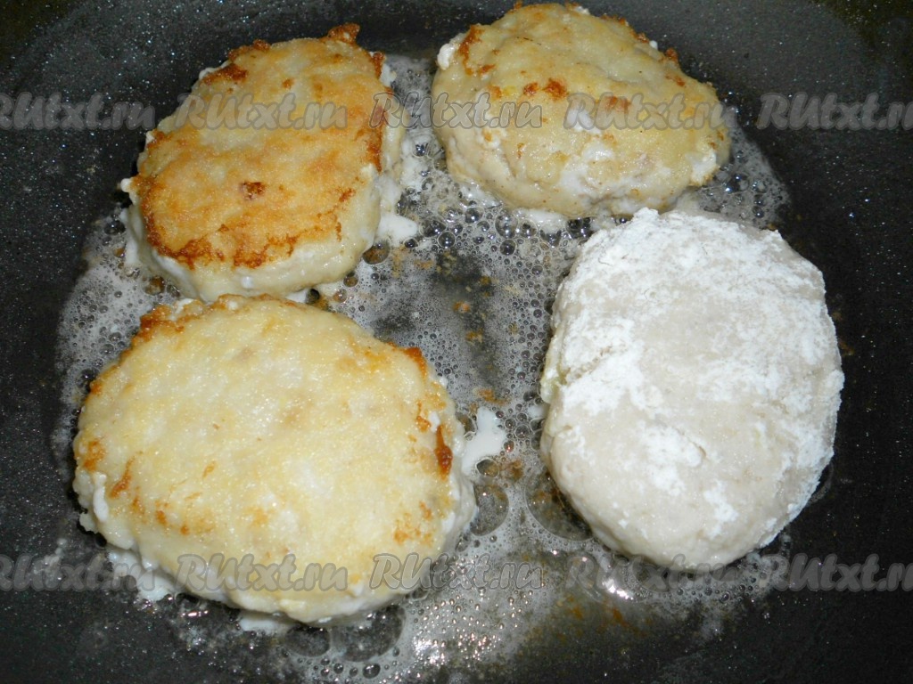 В сковороде хорошо разогреть растительное масло, затем выложить рыбные котлеты, жарить их на среднем огне с двух сторон до румяной корочки.