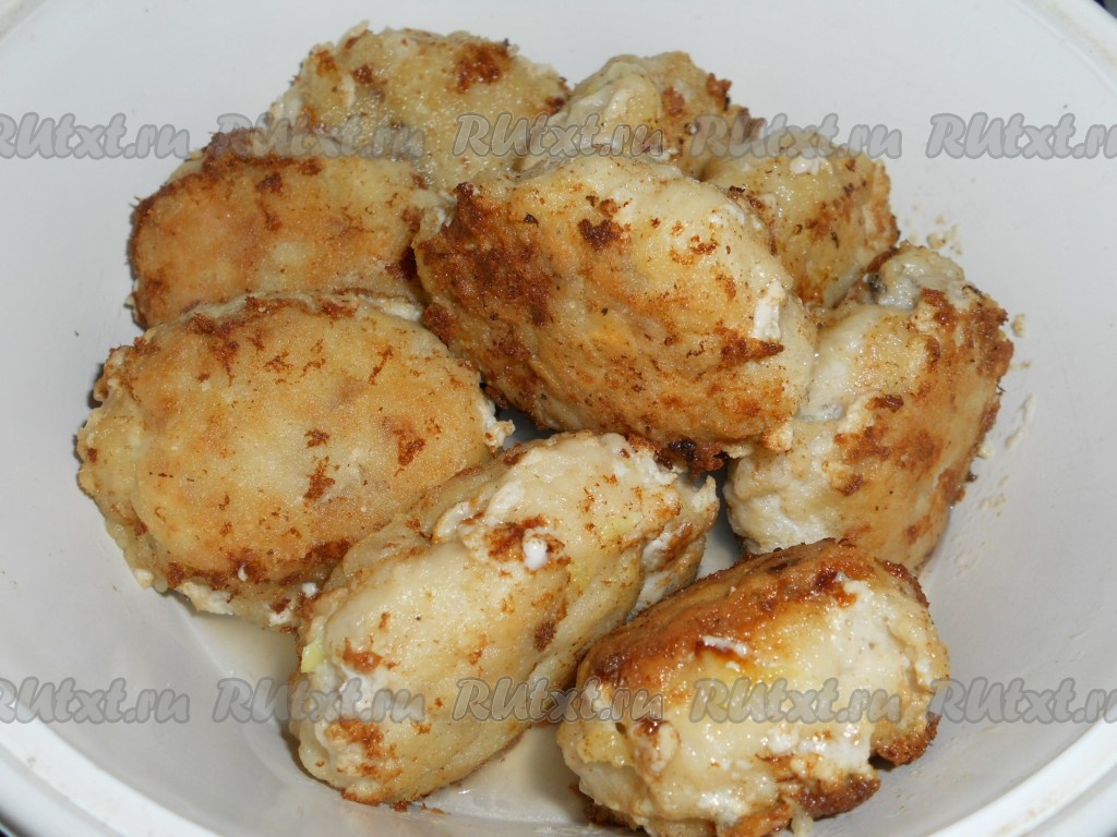 Тщательно перемешать рыбный фарш и оставить минут на 15, чтобы манка набухла. Сформировать котлеты (я сформировала 9 штук), обвалять их в муке со всех сторон.
