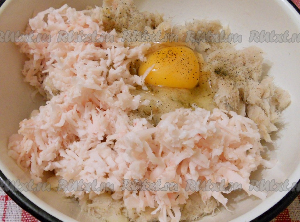 Пропустить филе рыбы через мясорубку вместе с салом и очищенным луком. Добавить яйцо, посолить и поперчить по вкусу, хорошо перемешать.