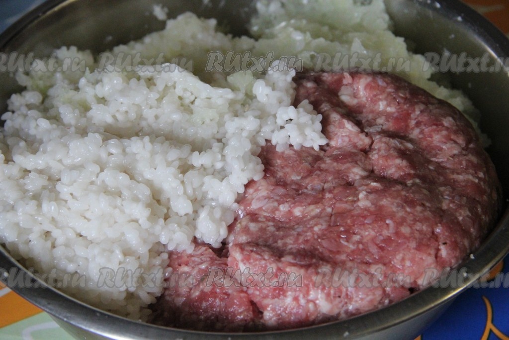 Рис залить водой и довести до полуготовности. Капусту и лук перекрутить на мясорубке, отдельно друг от друга. Количество перекрученной капусты должно быть в равных частях с фаршем. Количество капусты регулируйте и ориентируйтесь по количеству остальных ингредиентов. Рис, капуста и фарш должны быть в равных частях для ленивых голубчиков.