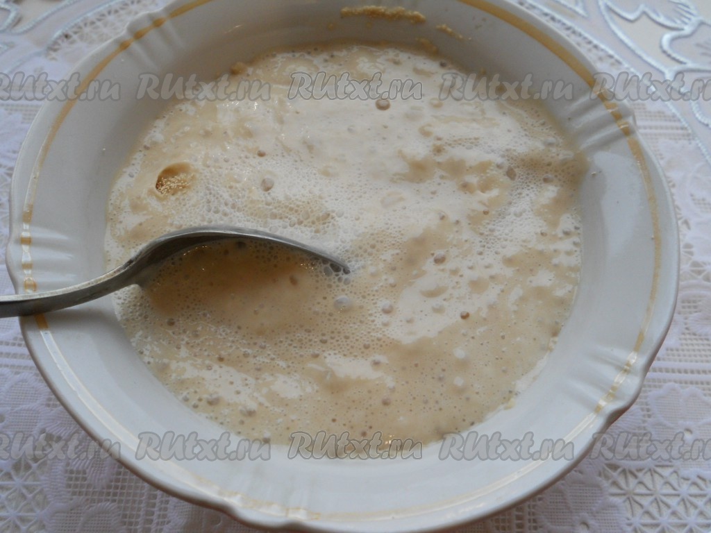 В воде распустить сухие дрожжи с 1 чайной ложкой сахара.