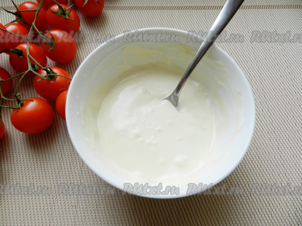 Для соуса смешать майонез и лимонный сок.