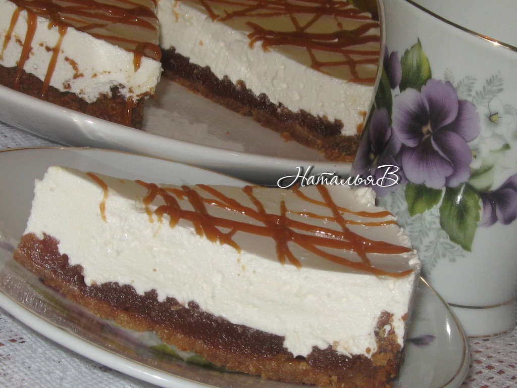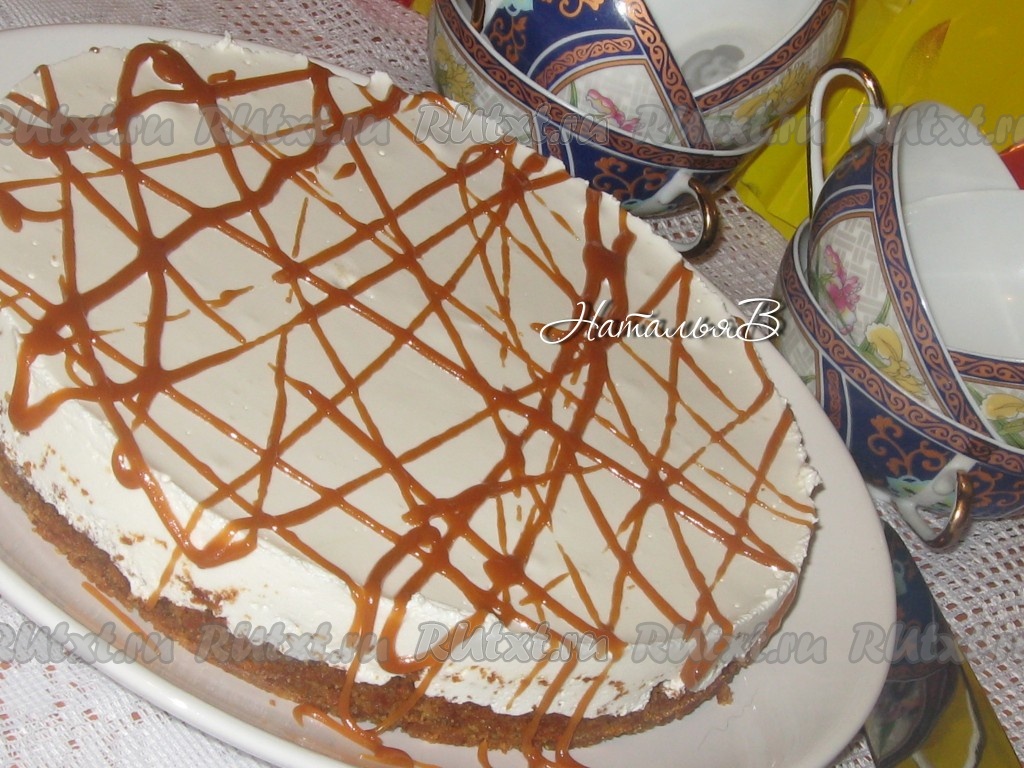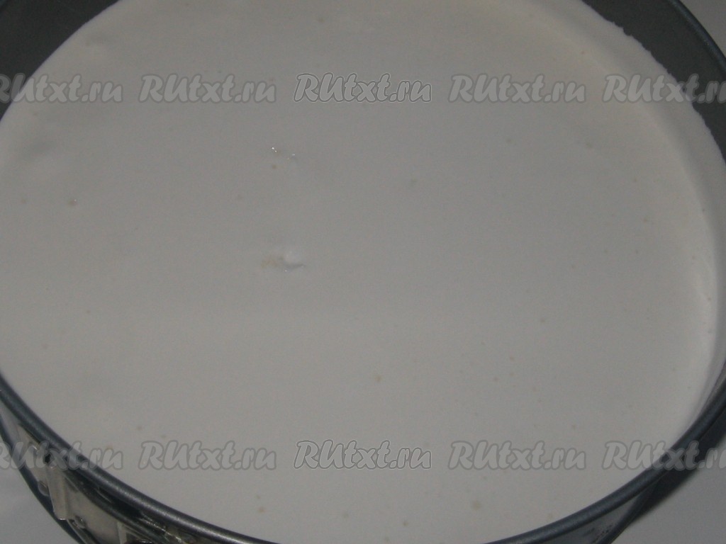 Готовую массу выложить в форму на корж и убрать в холодильник до полного застывания (минимум на 1 час).