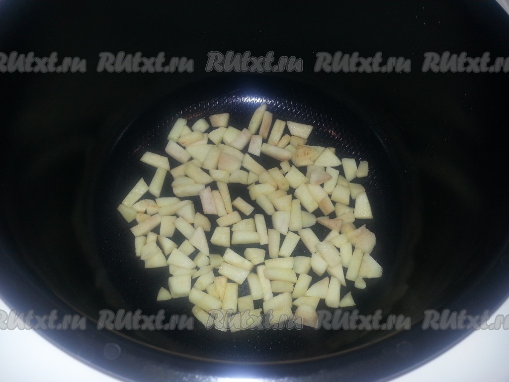 Сахар, ванилин, манку, молотый кориандр и соль смешать, яйца взбить, перемешать все вместе. Добавить творог. Перемешать до однородного состояния, чтобы не было комочков. В форму для мультиварки налить немного масла, включить режим «жарка» на 10 минут. Когда форма нагреется, поместить туда айву и обжарить.