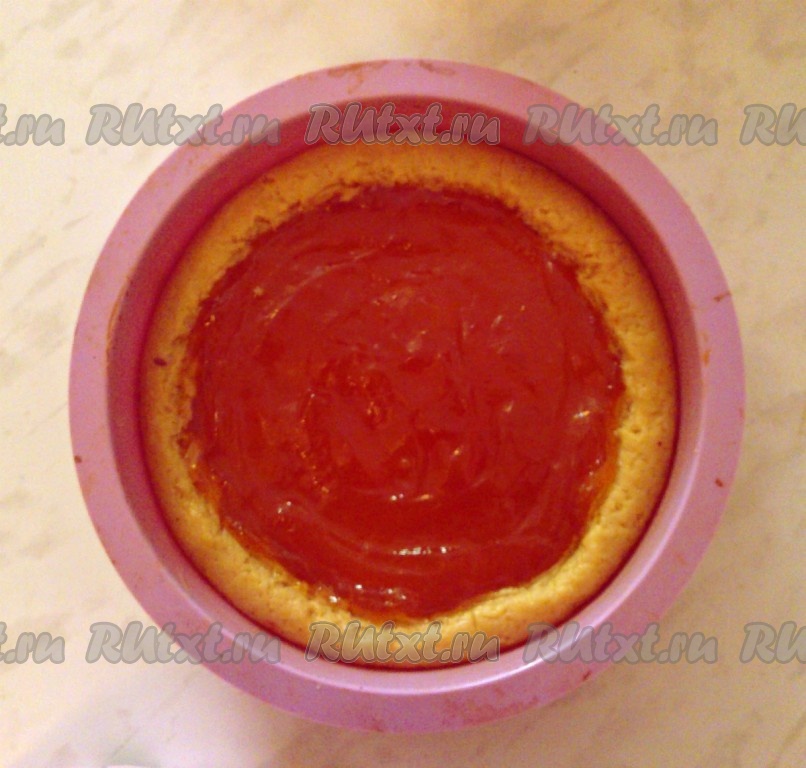 3. Сверху, на тесто, выложить слой варенья и аккуратно разровнять его ложкой.