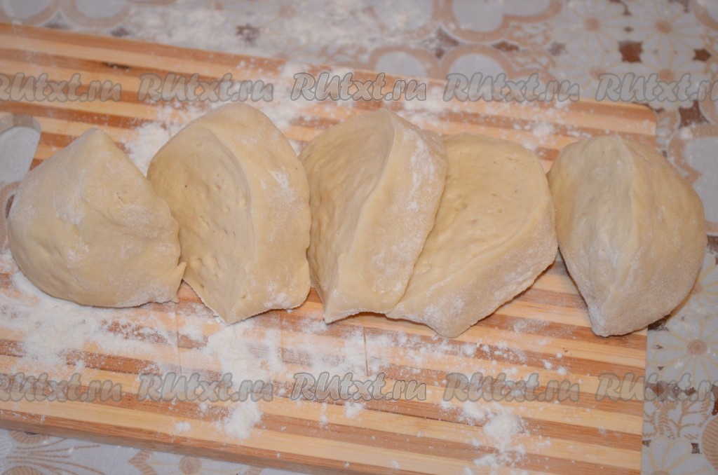 Отрезать от теста кусочки примерно по 100 грамм, скатать шарики.