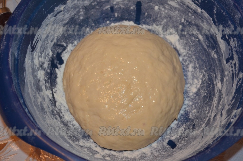 Скатать в шар, смазать маслом и убрать в миске в теплое место на 2 часа.