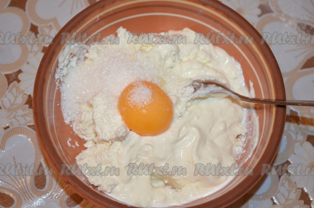 Для начинки перетереть все ингредиенты вилкой, ложкой или толкушкой. Если сухо, добавить еще сметаны.