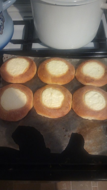 Печь до очень золотистого цвета (примерно 40 минут). Готовые ватрушки с творогом можно смазать сливочным маслом и обязательно накрыть полотенцем. Пусть отдохнут.
