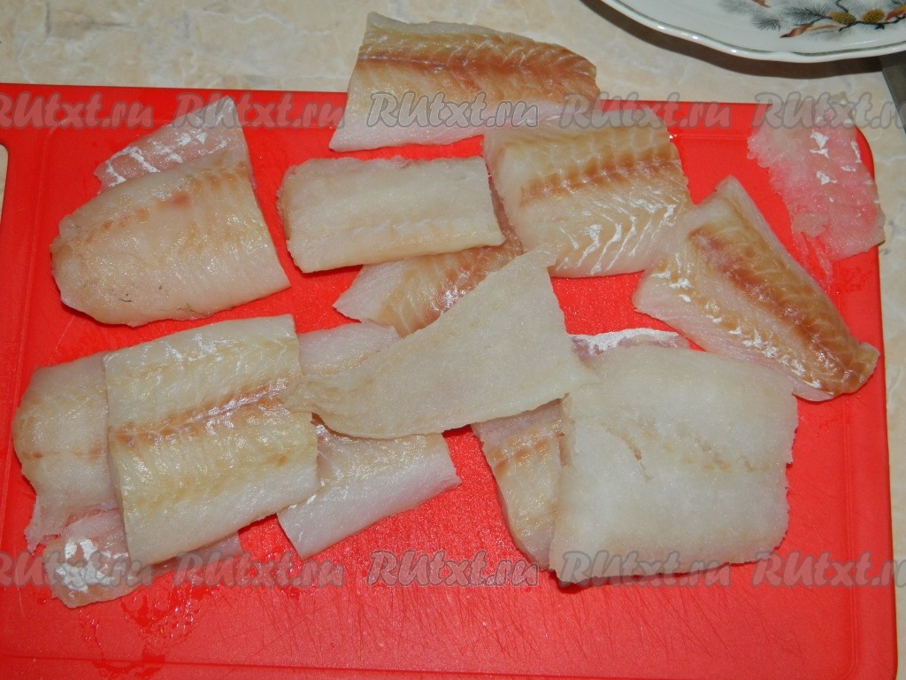 Филе рыбы моем, обсушиваем, нарезаем на порционные кусочки.
