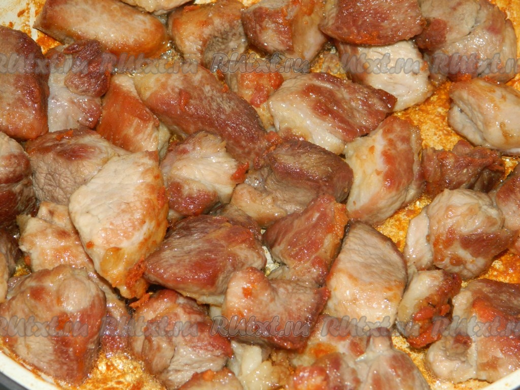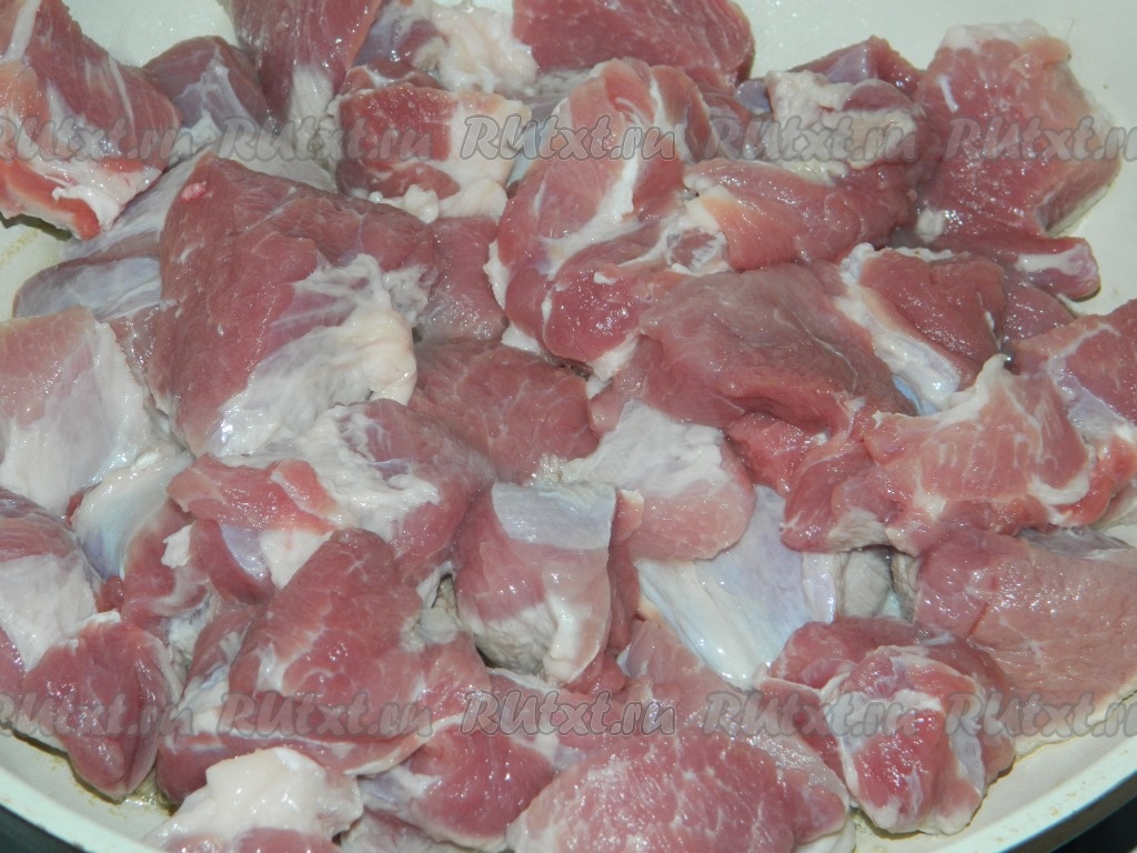 Режем мясо на кусочки. И обжариваем на сильном огне от вот такого состояния...