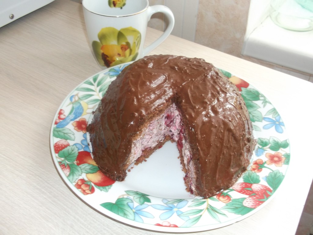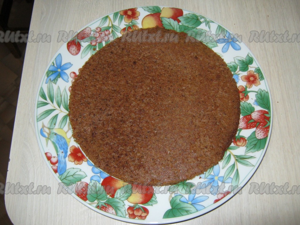 Сверху накрываем круглым коржом, вырезанным в начале.